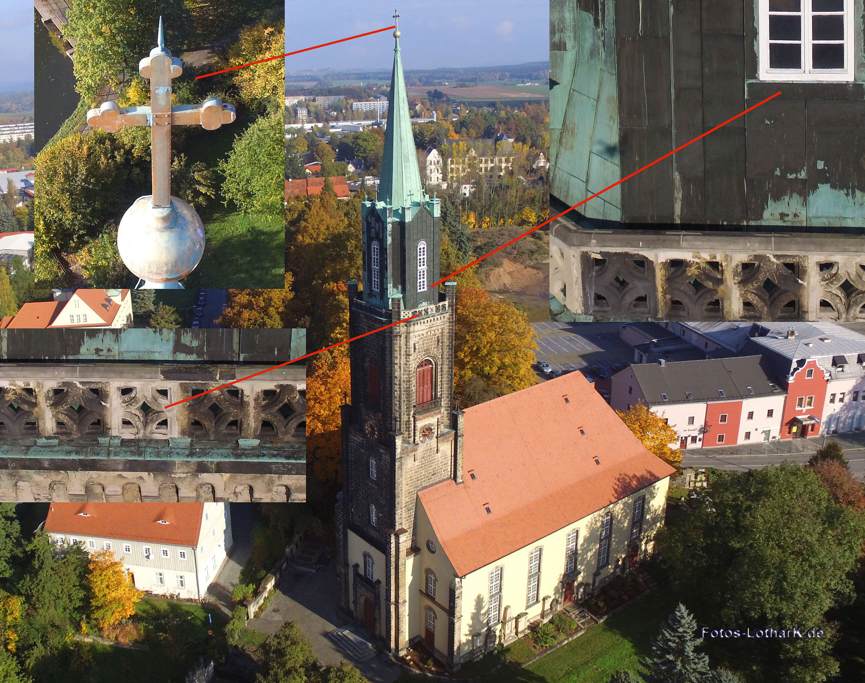 Durch das Einsetzen einer Drohne wird diese Arbeit erheblich erleichtert und spart mitunter sehr hohe Kosten. Höhen von bis zu 100 Meter sind dabei kein Problem.