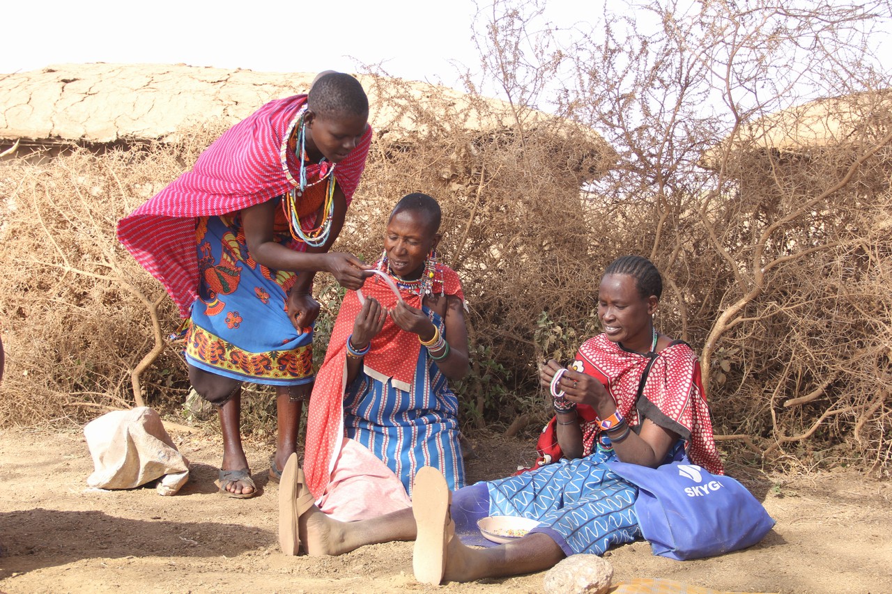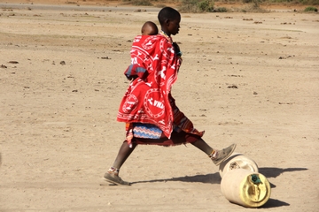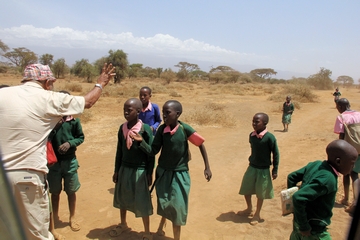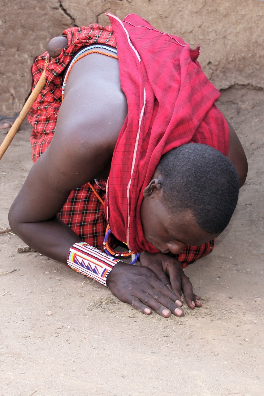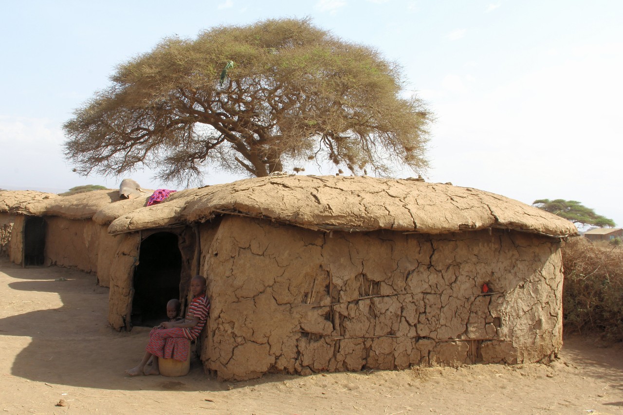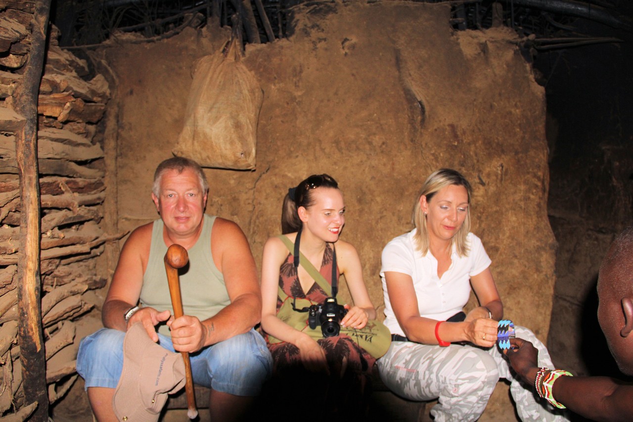 | Auf unserer Reise lag auch ein Zwischenstopp bei den Massai. Die flachen Hütten sind aus Kuhdung und Zweigen gefertigt. Das ist die typische Bauweise der Massai. Wie auf den Bildern zu sehen ist, gibt es eine strenge Anzugsordnung. So z.B. eine einheitliche Schulkleidung. Im Alltag tragen die Massai rote Gewänder und zu festlichen Anlässen grüne. Als wir ankamen, wurden wir vom gesamten Dorf empfangen. Ich sah aber auf meiner gesamten Tour keinen alten Massai. Ein interessantes Erlebnis war der Besuch solch einer Kuhdung-Hütte. Wir zwängten uns durch einen schmalen Eingang, bei dem ich schon fast stecken blieb. Im Hauptraum angekommen, mussten wir uns setzen. Voller Stolz zeigte uns der Massai sein Reich. Der Hauptraum war ca. 9 Quadratmeter groß. In der Mitte befand sich eine Feuerstelle, welche zum Glück aus war. Der Raum war von beißendem Qualm gefüllt - und das bei erloschenem Feuer. An der Seite befand sich ein Loch, durch welches höchstens die Faust eines erwachsenen Mannes passte. In der Decke befand sich eben solch Loch zum Rauch abziehen. Hinter der Wand war noch ein kleiner Raum. Dort schlief der Massai mit seinen 2 Frauen. Auf der anderen Seite war noch ein kleinerer Raum, der diente als Schlafstätte der Kinder. |