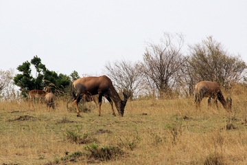 Topi-Antilopen beim Fressen |