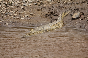 Hier am Grenzfluss zwischen Kenia und und Uganda spielen sich alljährlich dramatische Szenen ab. Tausende von Gnus überqueren den Fluss um nach der anderen Seite zu wechseln.