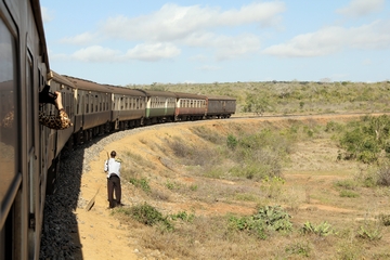 Nun kam es zur letzten Etappe der eigentlichen Safari. Mit dem Zug zurück nach Mombassa. Bis dahin hatten wir genau 1989 Km auf dem Tacho. Nun ging es per Schiene, mit der Uganda-Bahn 510 Km zurück. Die Fahrt dauerte von 19:00 Uhr - 11: 00 Uhr. Ich empfand sie als angenehm. Der Zug war abgewohnt, aber sauber.