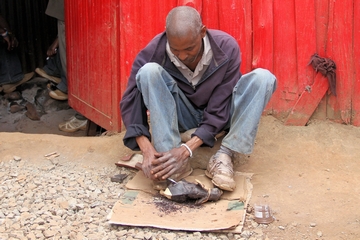 Hier stellt ein Kenianer mit primitivsten Mitteln ein Kunstwerk her |
