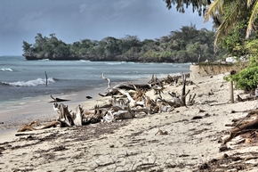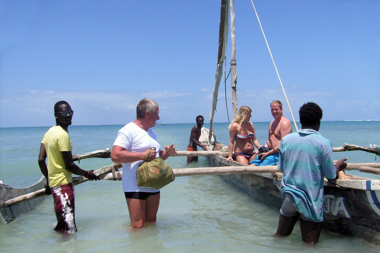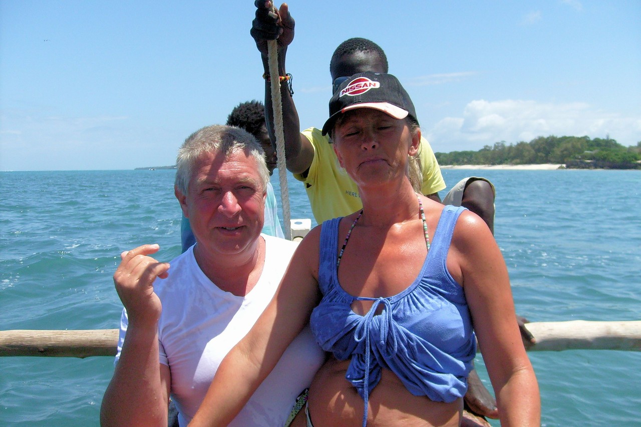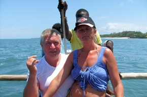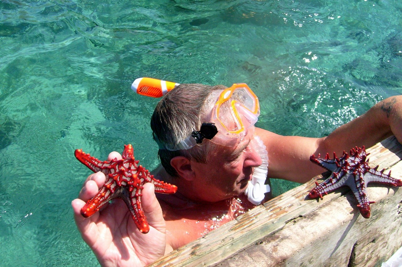 Von Loto ließen wir uns zu einer Bootstour überreden, als das Boot kam, ahnten wir, auf was wir uns eingelassen hatten. Das Boot war aus einen einzigen Mangobaum gefertigt und machte einen stabilen Eindruck. Obwohl ich keine Nägel sah, war das Boot recht stabil. Auf Grund lagen diese fantastischen Seesterne. Beim Tauchen fand ich den "Roten Stern von Afrika" |